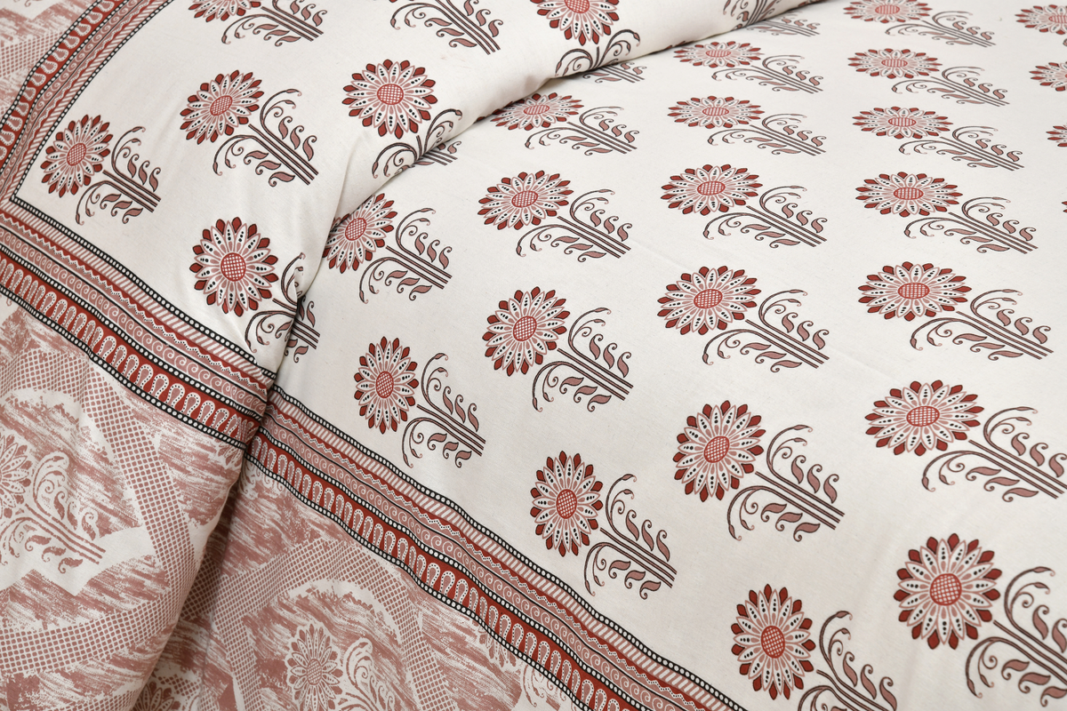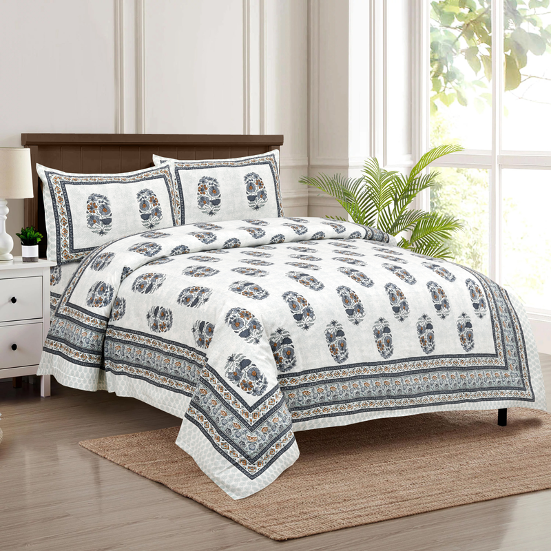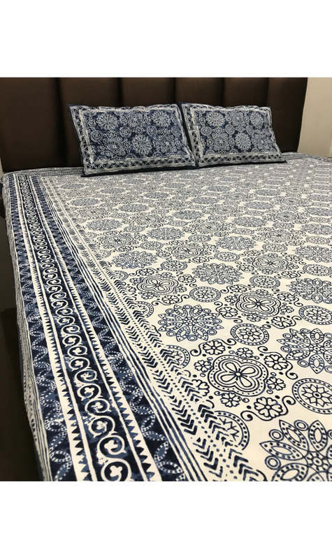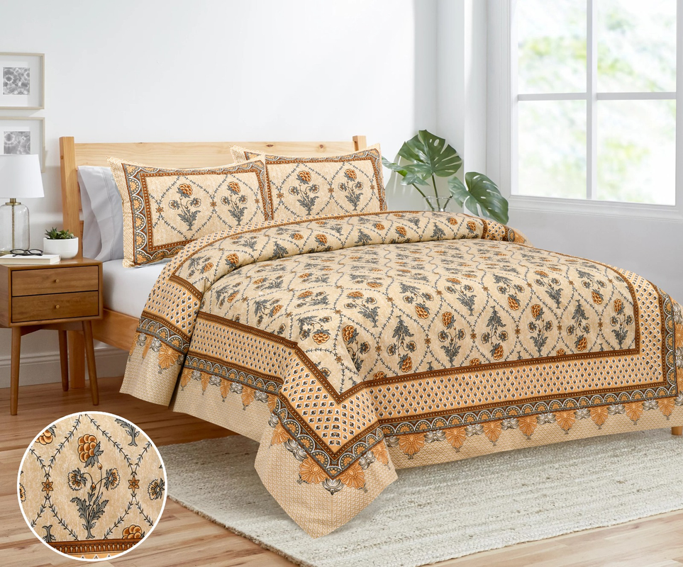 Rajasthani Jaipuri Prints Cotton Bedsheet For Double Bed With Two Pillow Cover Size Queen ( 90×100 Inch)