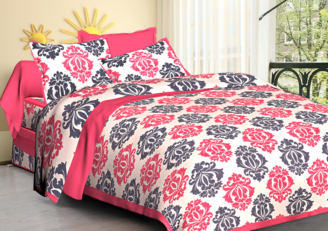 UPNEJA V HANDLOOM Polycotton 3D Printed Double Bedsheet with two pillow cover ( 90″X100″)